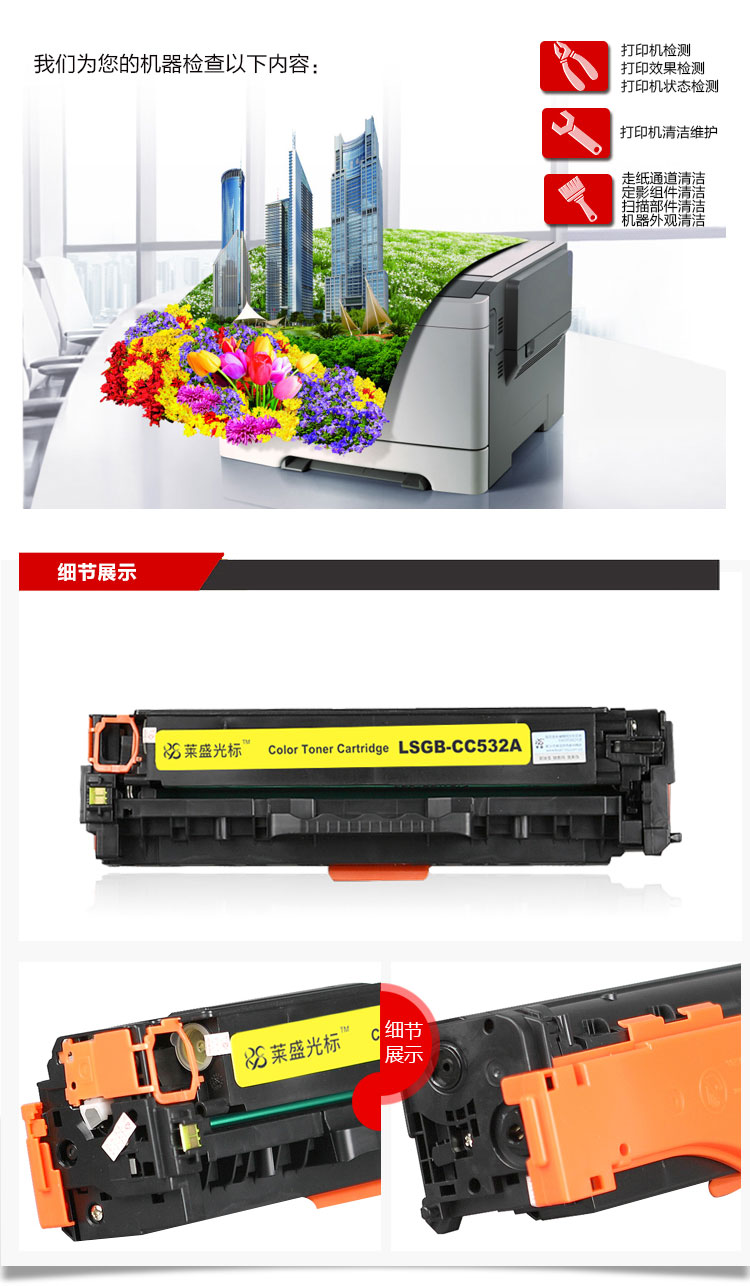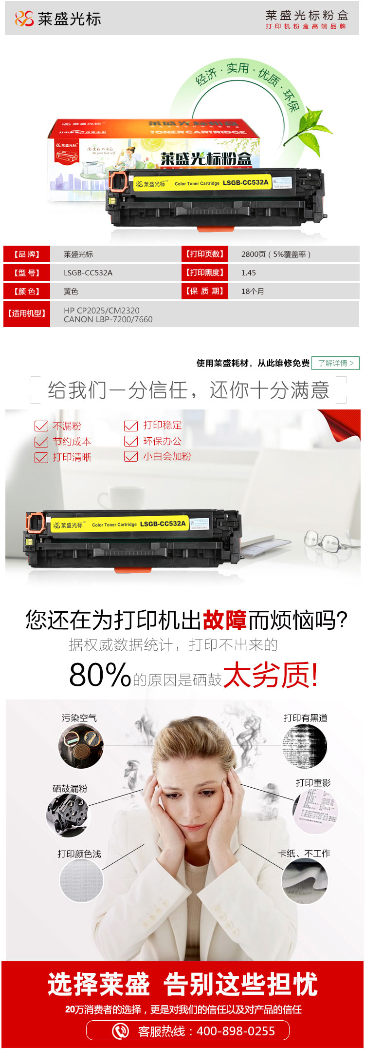 萊盛光標(biāo) LSGB-CC532A 黃色粉盒 適用:HP CP2025/CM2320 CANON LBP-7200/7660 單位:支