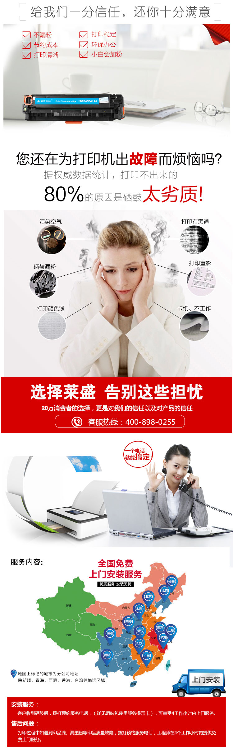 萊盛光標(biāo) LSGB-CE411A 青色粉盒 適用 HP CP-M351a/M451/M375nw/M475dn 單位:支
