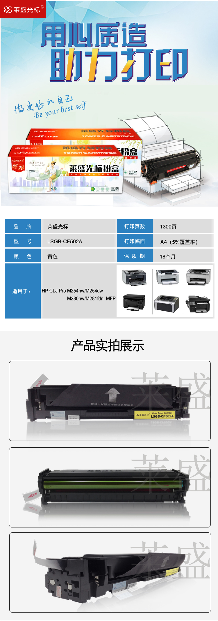 萊盛光標(biāo) LSGB-CF502A 黃色硒鼓 適用:HP m254nw/m254dw/m281fdn/m280fdw 單位:支