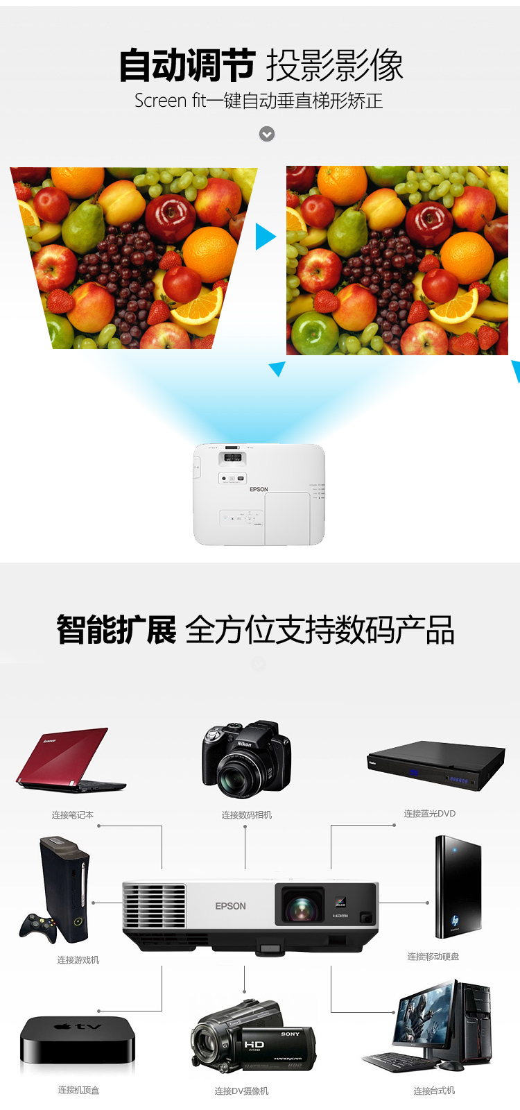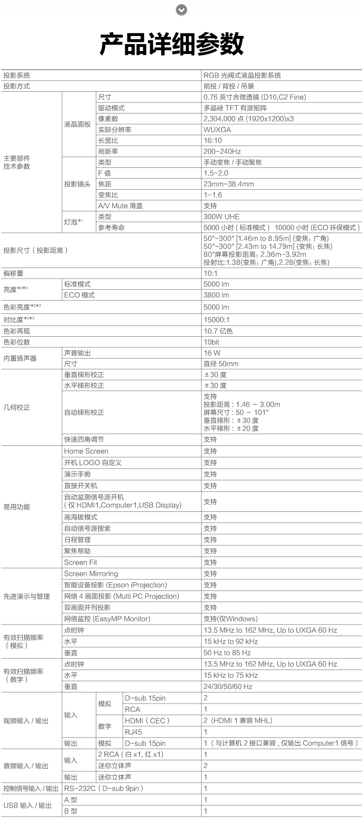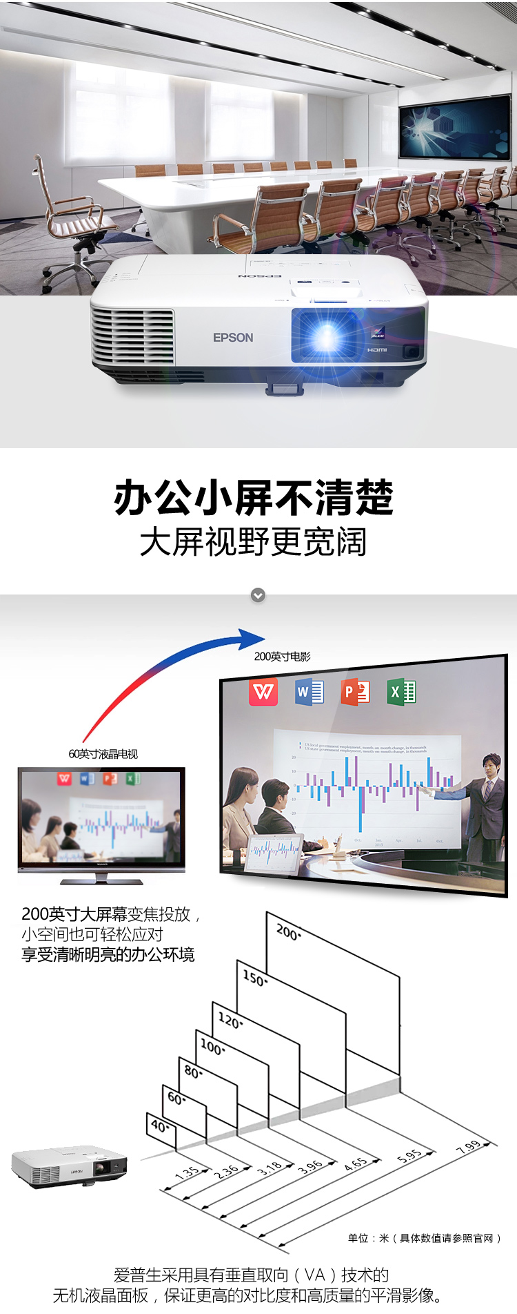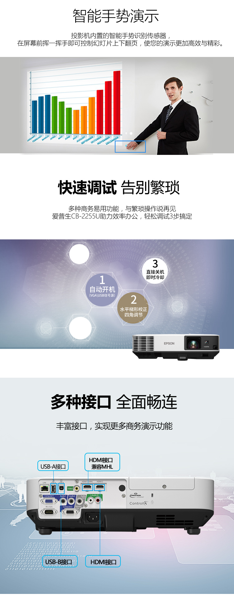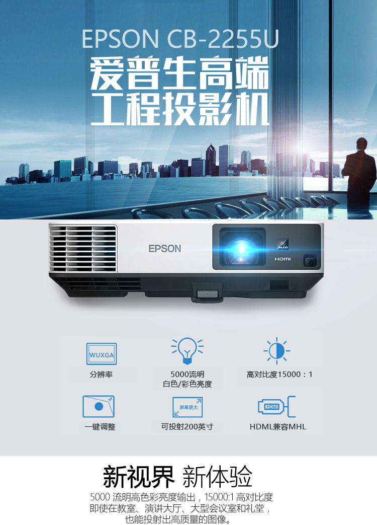 愛普生投影儀 CB-2255U 5000流明 1080P(1920X1200)全高清 無線投影 單位:臺