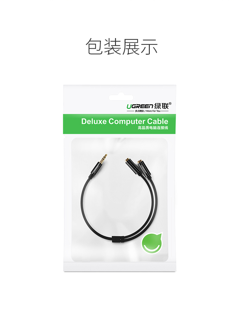 綠聯(lián) AV134 3.5mm一分二音頻線1分2公對母情侶耳機線AUX分線器轉(zhuǎn)接頭 白色 0.25米 單位:根