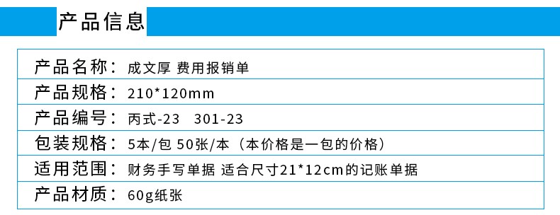 成文厚費(fèi)用報(bào)銷單 丙式-23 單位:5本/包