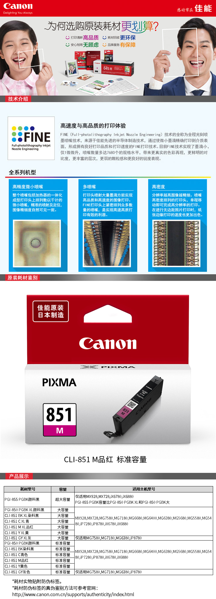 佳能墨盒 CLI-851 紅色墨盒 適用:IP7280/MX728/928/IX6780/6880/MG6380/MG5480 單位:支