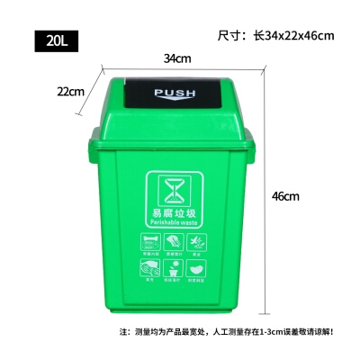 納麗雅 20L搖蓋 綠色 廚余垃圾分類垃圾桶帶蓋 飯店餐飲可回收廚余環(huán)衛(wèi)有害戶外四分類 單個(gè)裝