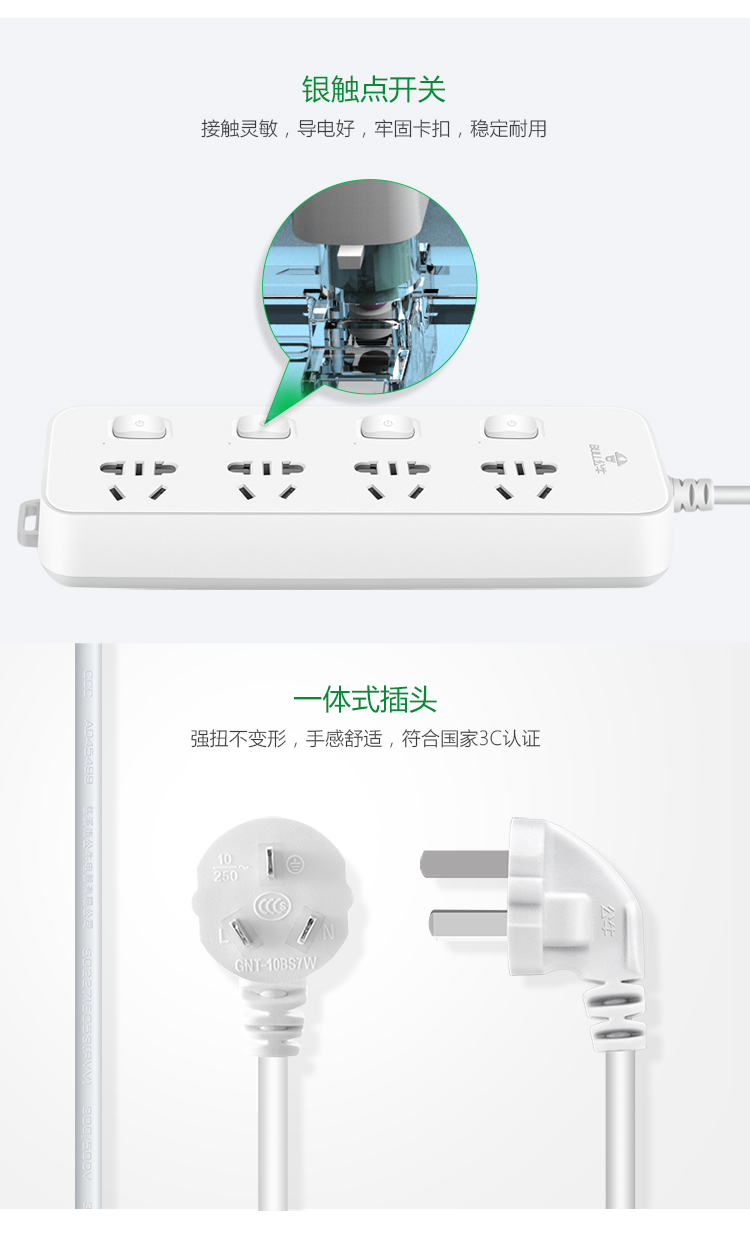 公牛插座 GN-B3043 3米4開(kāi)4位新國(guó)標(biāo)插座 單位:個(gè)