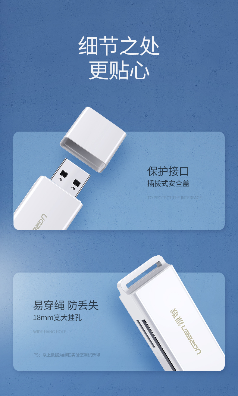 綠聯(lián)讀卡器 CM104 多功能二合一USB3.0高速讀取 白色 單位:個