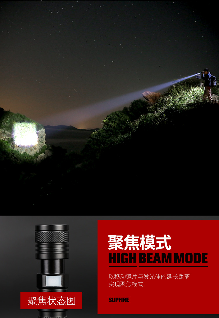 神火(supfire)A2升級版 強(qiáng)光手電筒可充電式LED遠(yuǎn)射型迷你變焦燈戶外家用10W