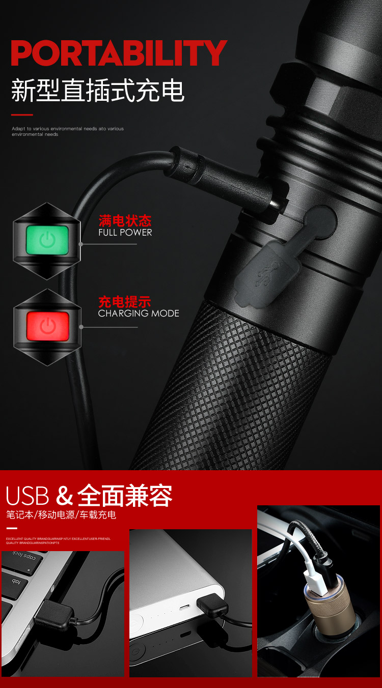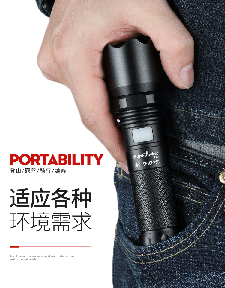 神火(supfire)A10強光手電筒LED遠射家用戶外騎行USB充電