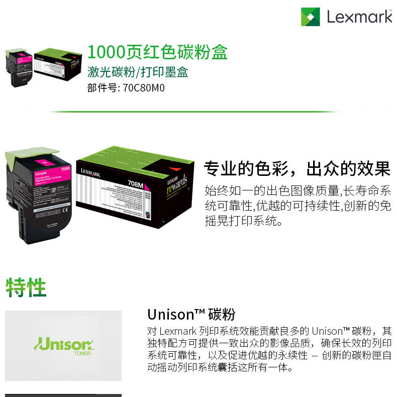利盟 70C80M0 紅色粉盒 適用CS/310/410/510dn機(jī)型(約1000頁(yè))
