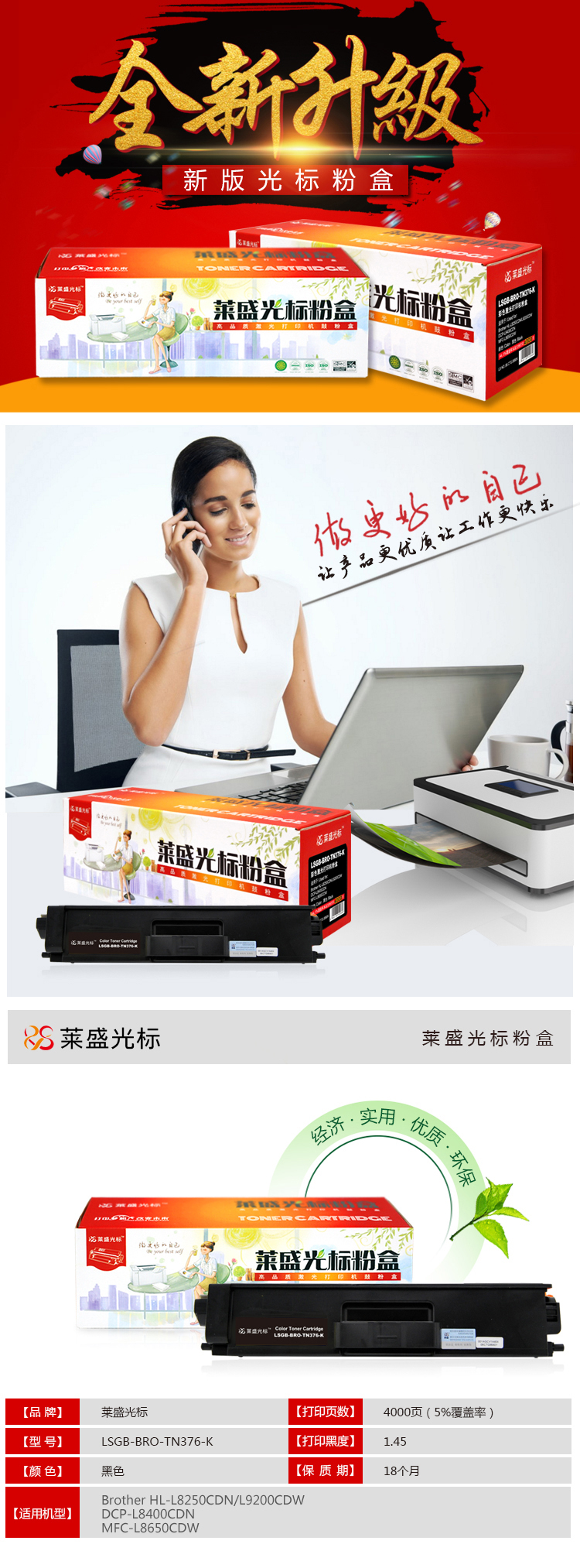 萊盛光標(biāo) LSGB-BRO-TN376-K 黑色硒鼓 適用于Brother HL-L8250CDN/L9200CDW