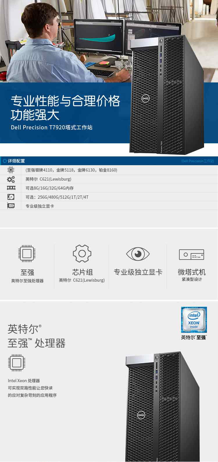 戴爾(DELL)Precision 7920Tower塔式圖形工作站主機(jī)(銀牌4110*2/8G*2/1T SATA/NVS315-1G/鍵鼠)三年質(zhì)保