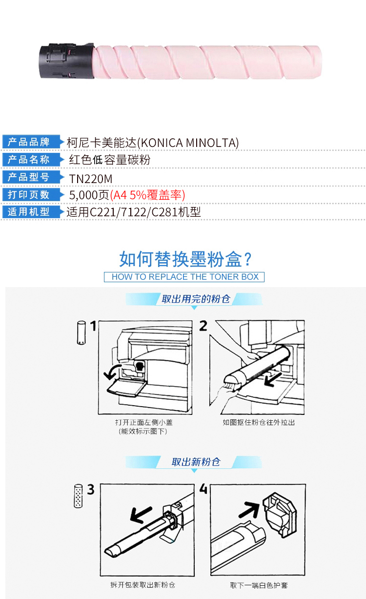 柯尼卡美能達粉盒 TN220M 紅色 低容 單位:支