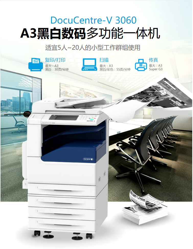 富士施樂復(fù)印機(jī) DocuCentre-V 3060 CPS 4Tray 黑白激光復(fù)合復(fù)印機(jī) 單位:臺