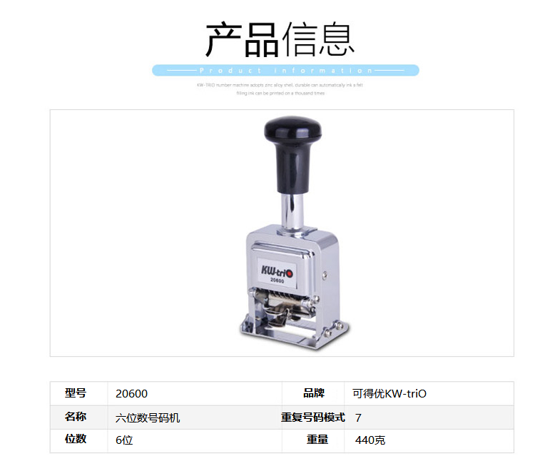 可得優(yōu)自動打碼機(jī) 20600六位數(shù) 單位:個