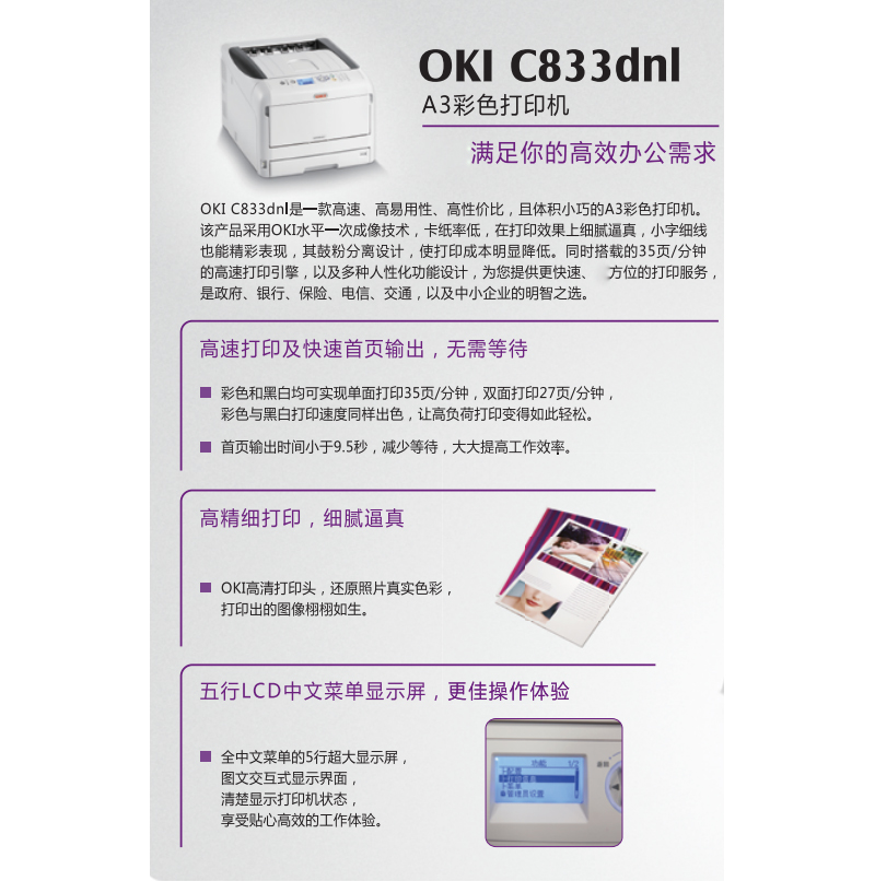 OKI激光打印機(jī) C833dnl 單位:臺(tái)