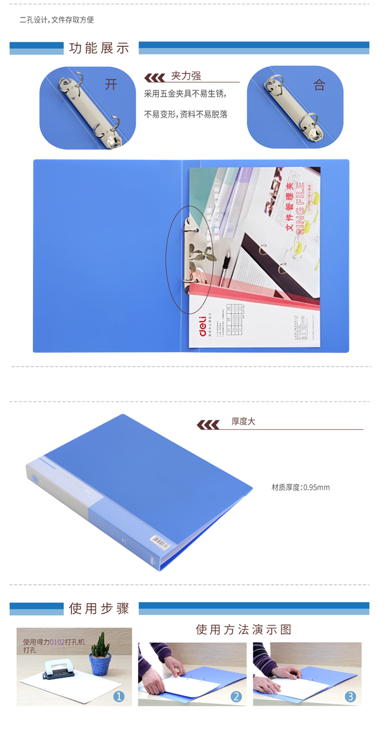 得力文件夾 5382 A4二孔O型 藍(lán) 單位:支