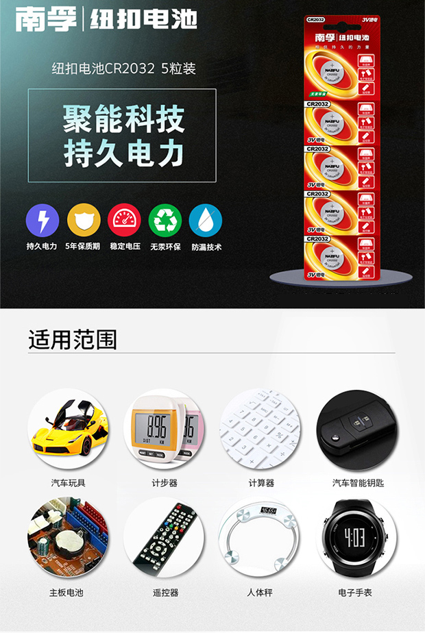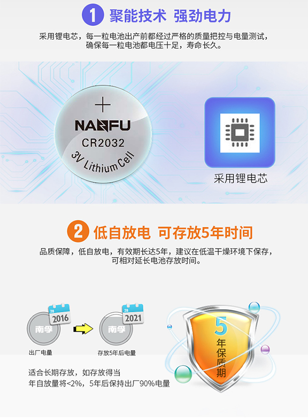南孚電池 CR2032 紐扣電池3V鋰電池5粒 單位:卡