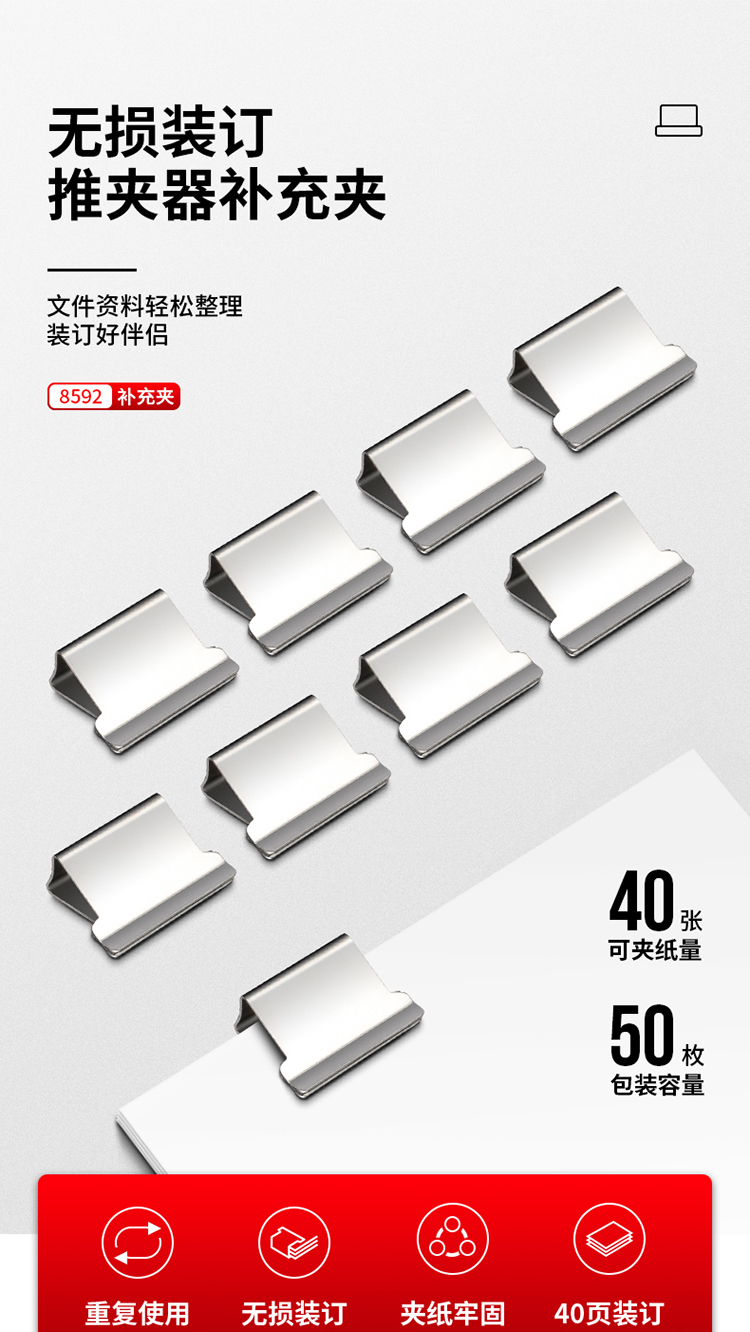 得力推夾器補(bǔ)充夾子 8592 50枚裝 單位:卡