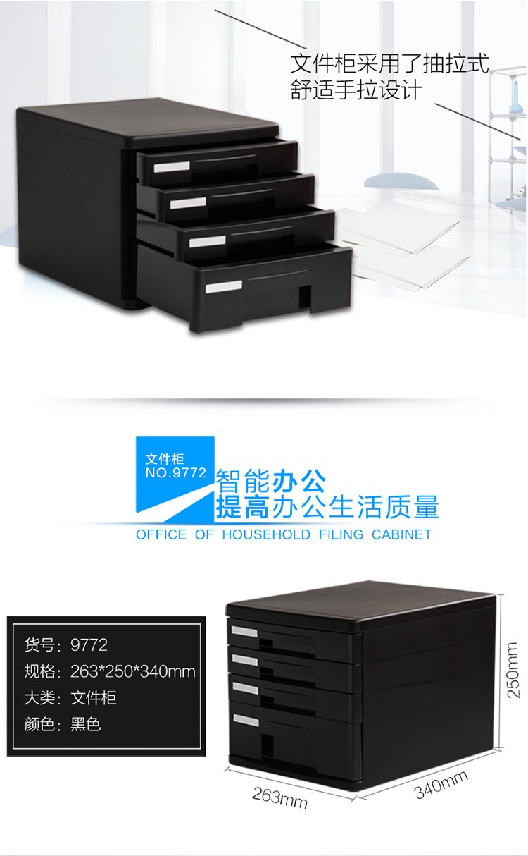 得力文件柜 9772 四層硬塑文件柜 黑色 單位:個(gè)