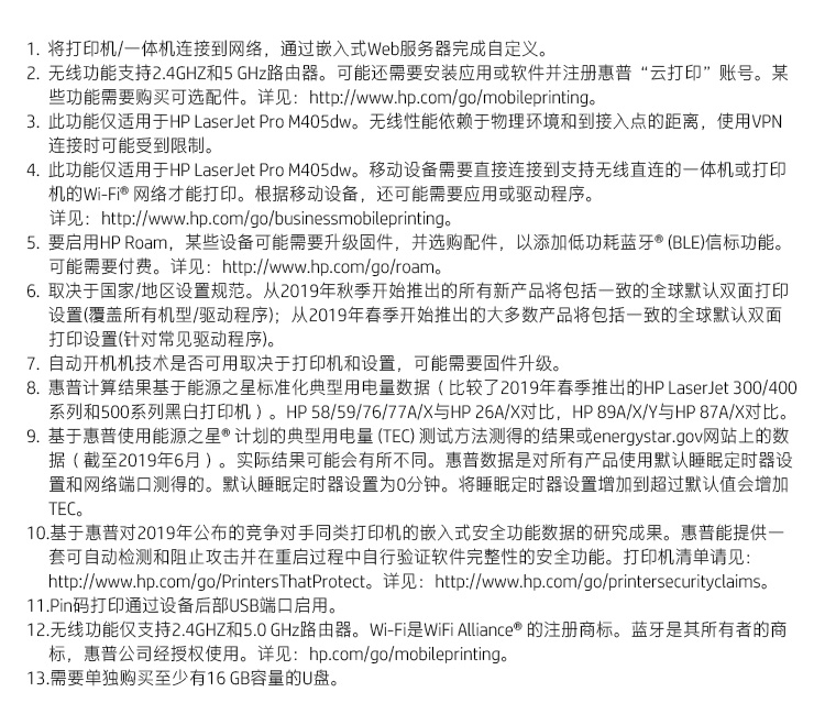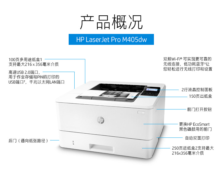 惠普專業(yè)級激光打印機 M405dw 單位:臺