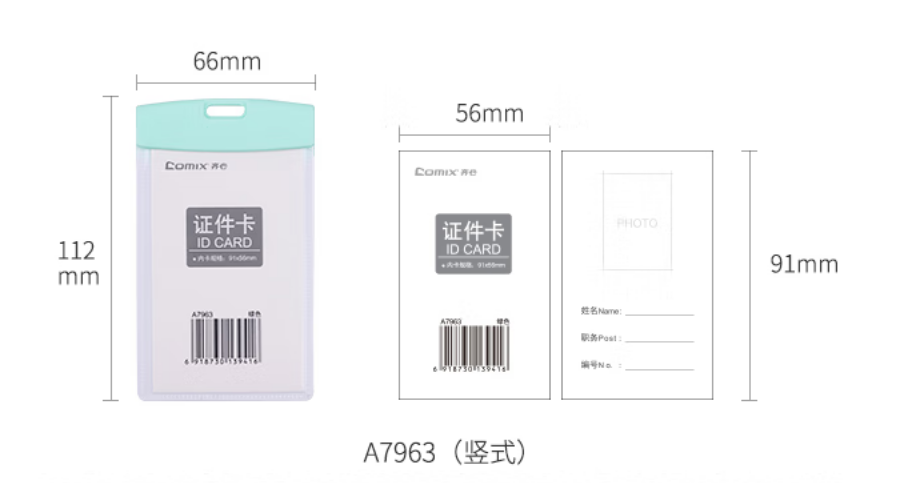 齊心豎式證件卡 A7963 黑紅綠灰 單位:個(gè)