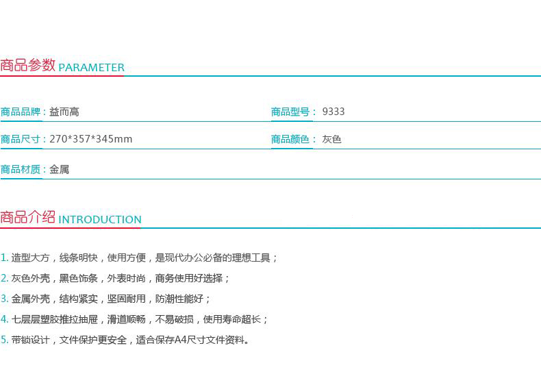 益而高文件柜 9333 金屬七層文件柜 單位:個