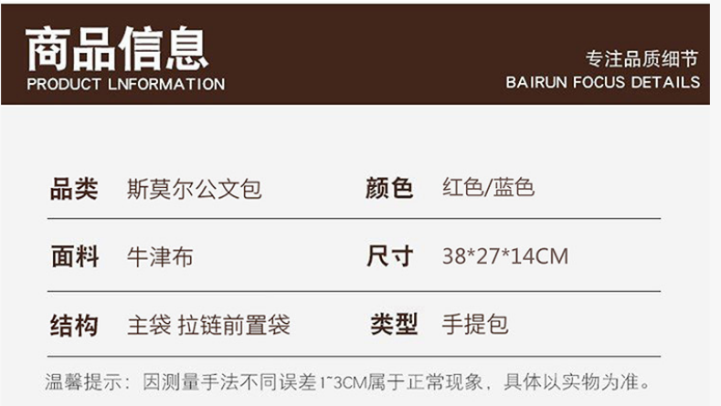 斯莫爾公文包 SL-855 藍(lán)色/紅色 尼龍布雙拉鏈?zhǔn)痔嵛募募?單位:個(gè)