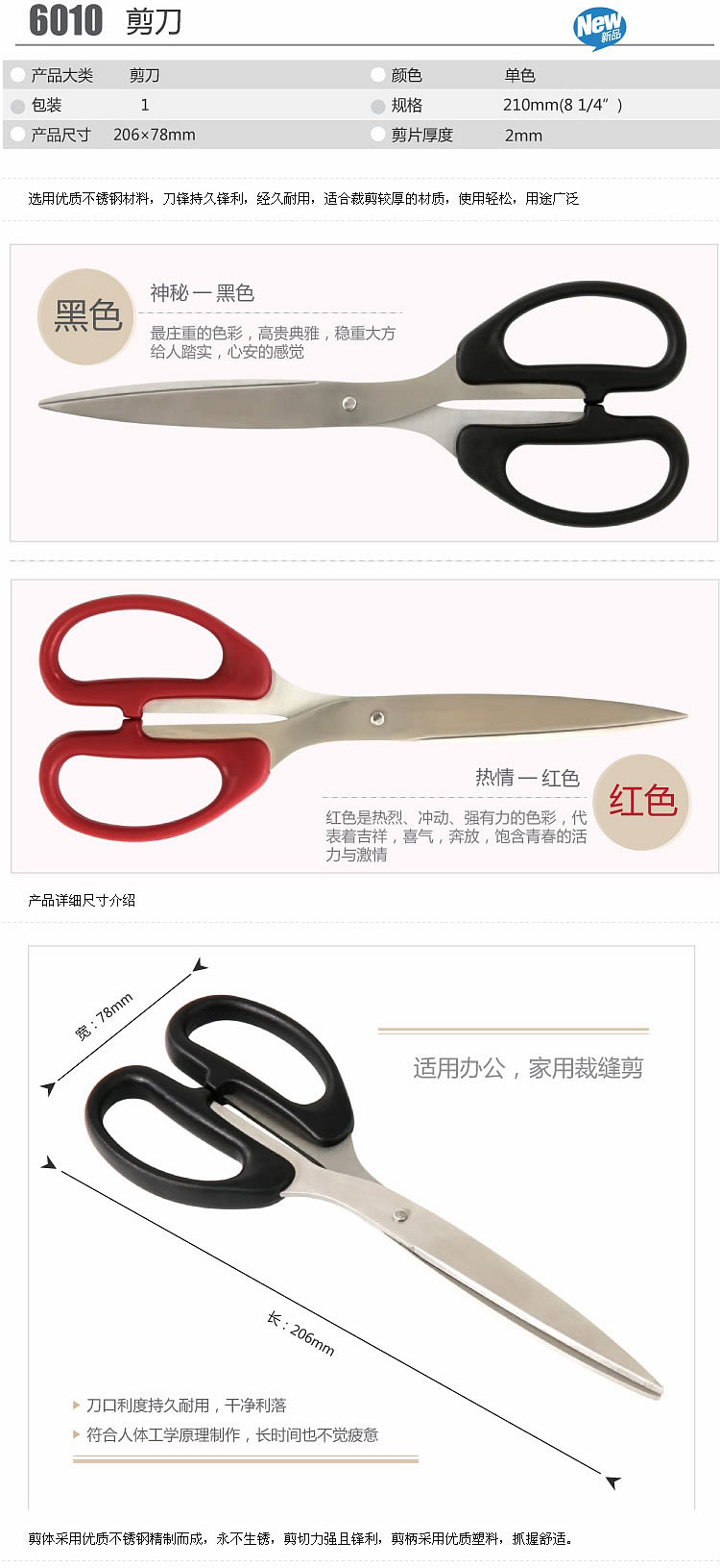得力剪刀 6010 210mm大號(hào)辦公生活剪刀 顏色隨機(jī) 單位:把