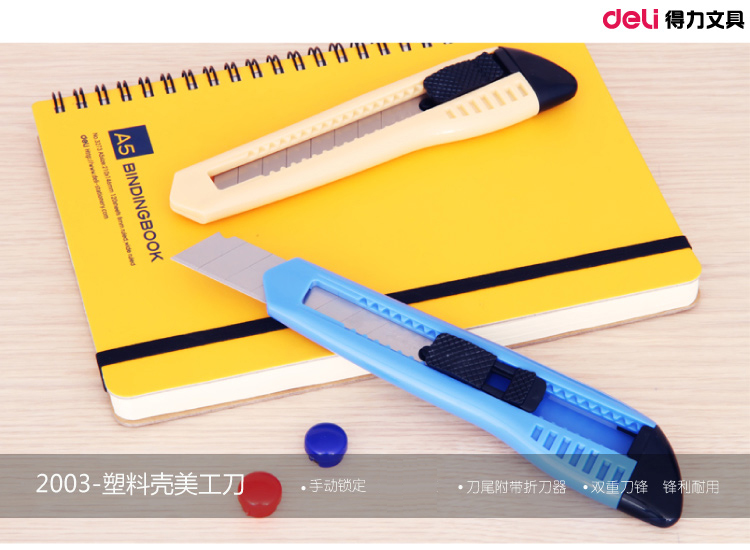 得力(deli)2003 大號耐用塑料殼美工刀/裁紙刀 (黃、藍混色隨機發(fā))