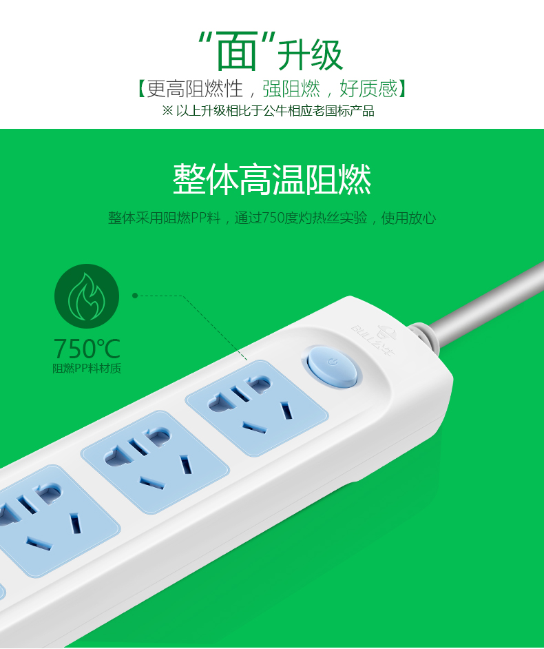 公牛插座 GN-602 3米一控五新國標孔插線板 單位:個
