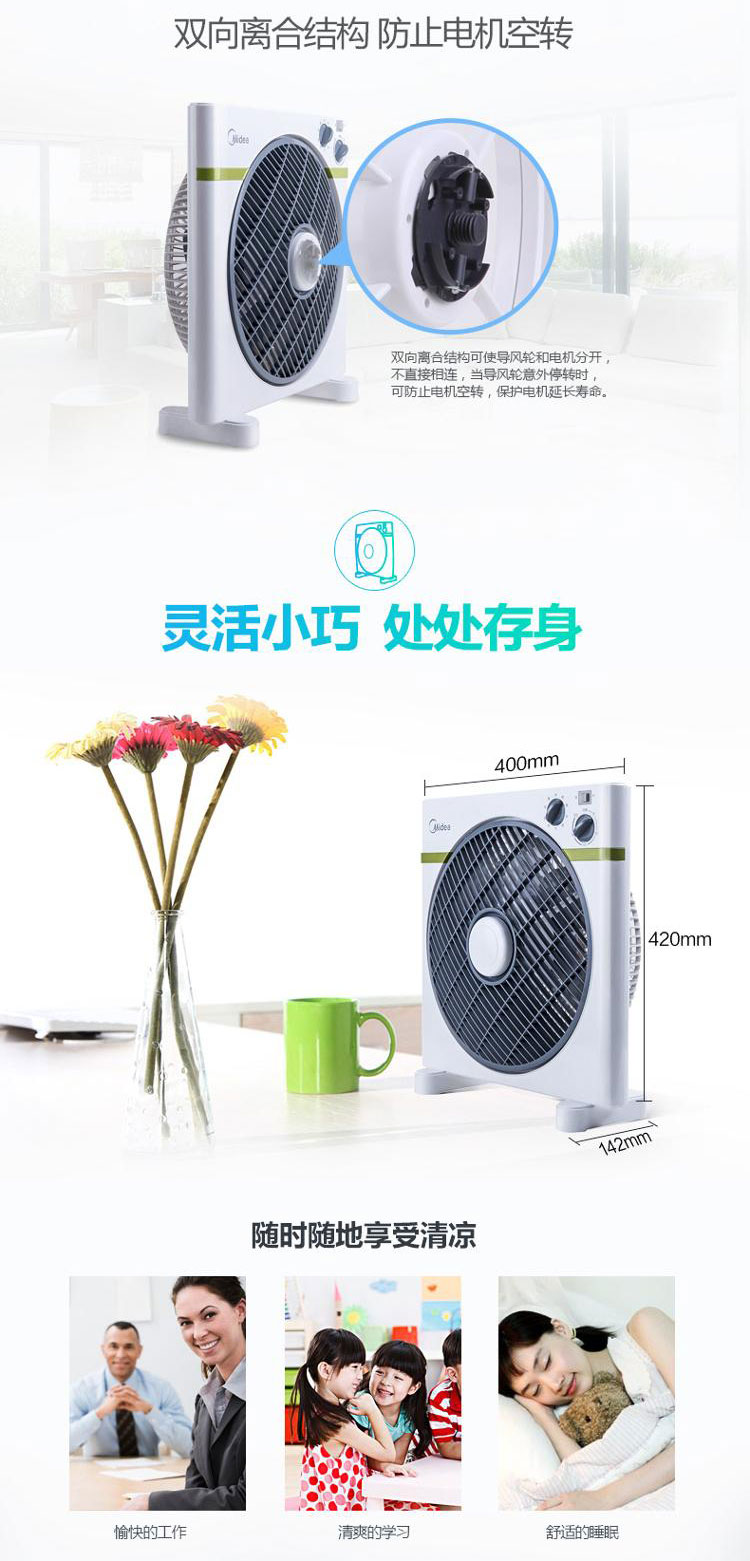 12寸加大風(fēng)葉設(shè)計(jì),風(fēng)力勁足,不占空間,收納簡(jiǎn)易便捷;四檔風(fēng)速,360°雙向?qū)эL(fēng)學(xué)生扇/鴻運(yùn)扇,120分鐘定時(shí),傾倒斷電