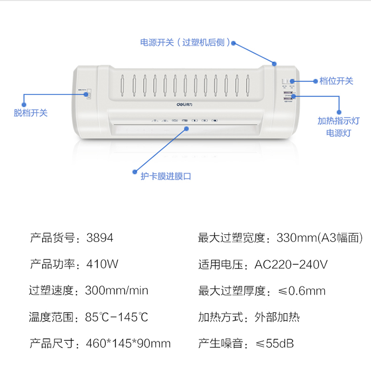 得力塑封機(jī) 3894 A3時(shí)尚專業(yè)靜音型塑封機(jī) 單位:臺(tái)