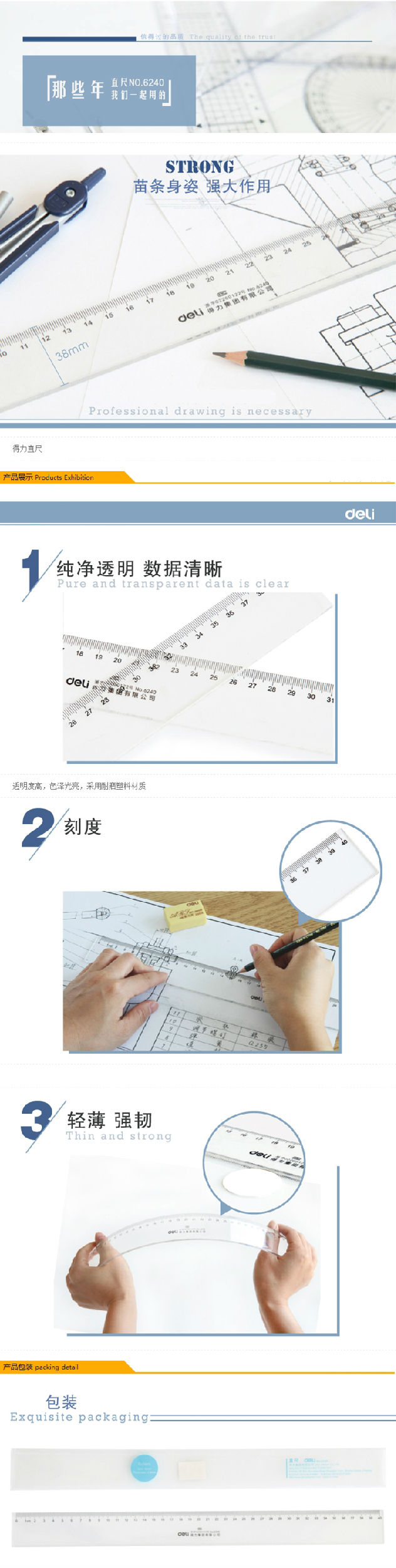 得力尺子 6240 40cm塑料直尺 單位:把