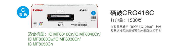 佳能硒鼓 CRG-416C 青色硒鼓(適用:iC MF8050Cn 8030cn 8010cn 8080Cw) 單位:支