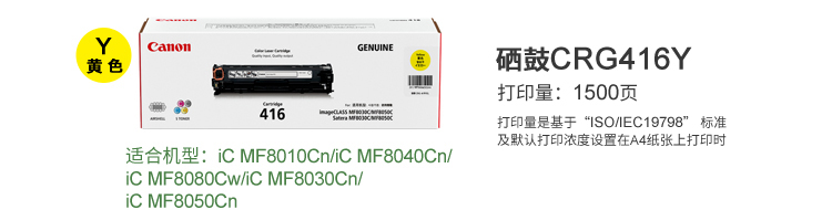 佳能硒鼓 CRG-416Y 黃色硒鼓(適用:iC MF8050Cn 8030cn 8010cn 8080Cw) 單位:支