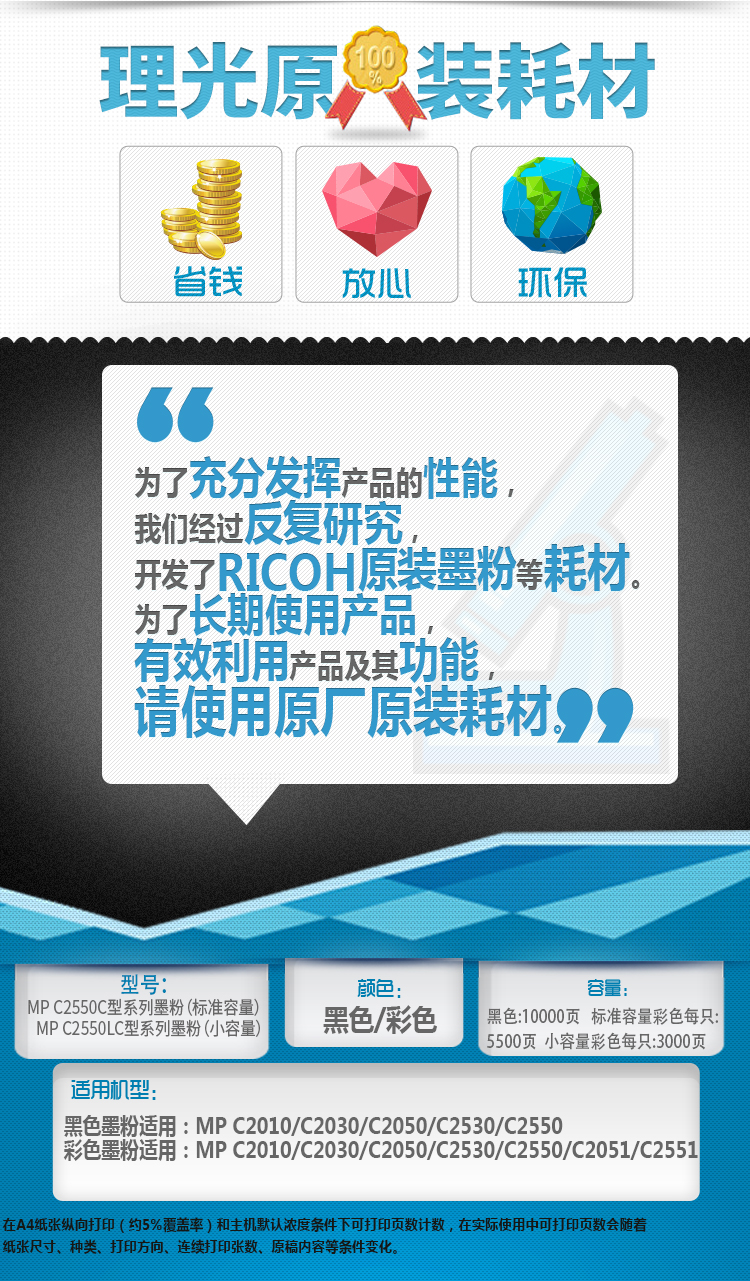 理光墨粉 C2550C型系列 黑色墨粉 適用 C2010/C2030/C2050/C2530/C2550 單位:支