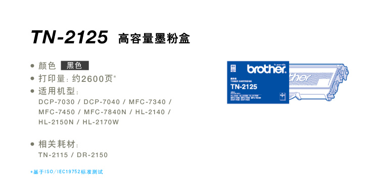 兄弟墨粉 TN-2125 黑色粉盒 高容 適用:2170/7340/7450/2140 單位:支