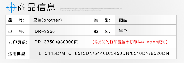 兄弟硒鼓 DR-3350 適用:機型:HL-5440D/5445D/5450DN/6180DW/MFC-8510DN/8515DN/8520DN 單位:支