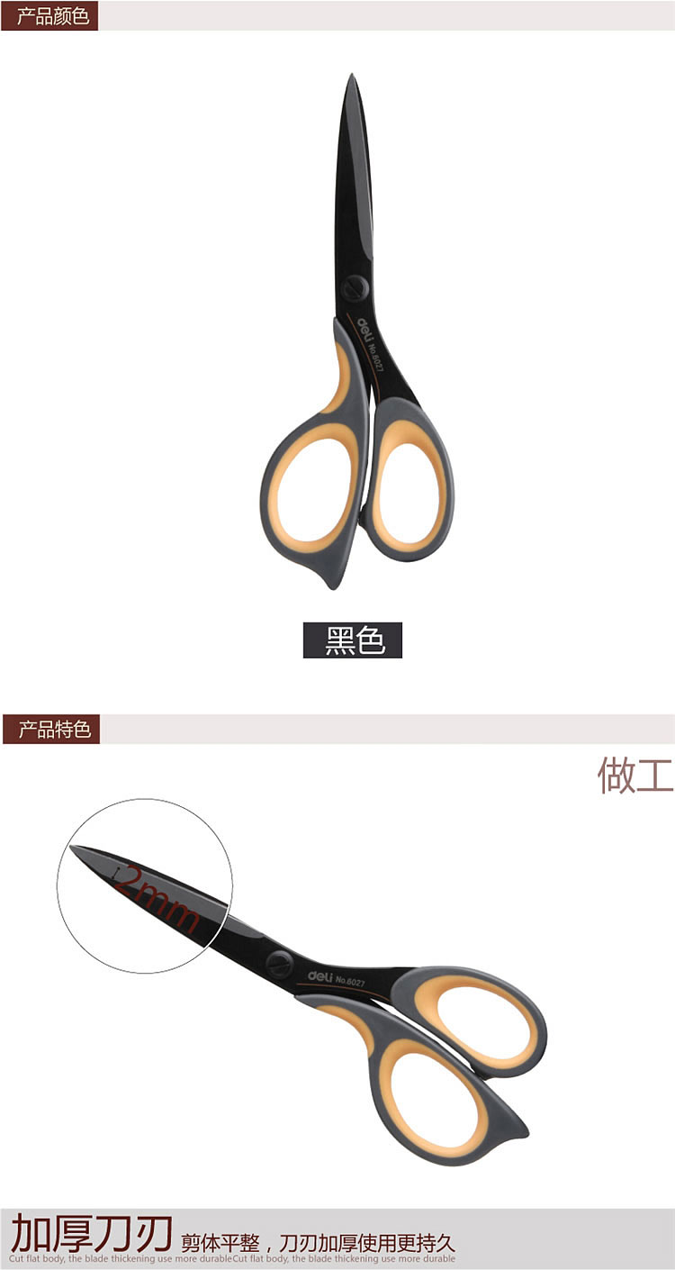 得力剪刀 6027 合金不銹鋼剪刀/辦公剪刀/美工剪刀 單位:把