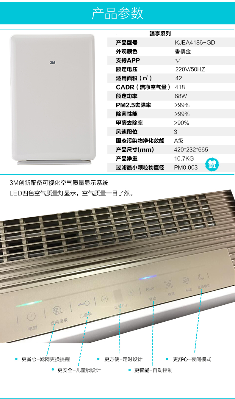 3M空氣凈化器 KJEA4186-GD除PM2.5除甲醛 單位:臺
