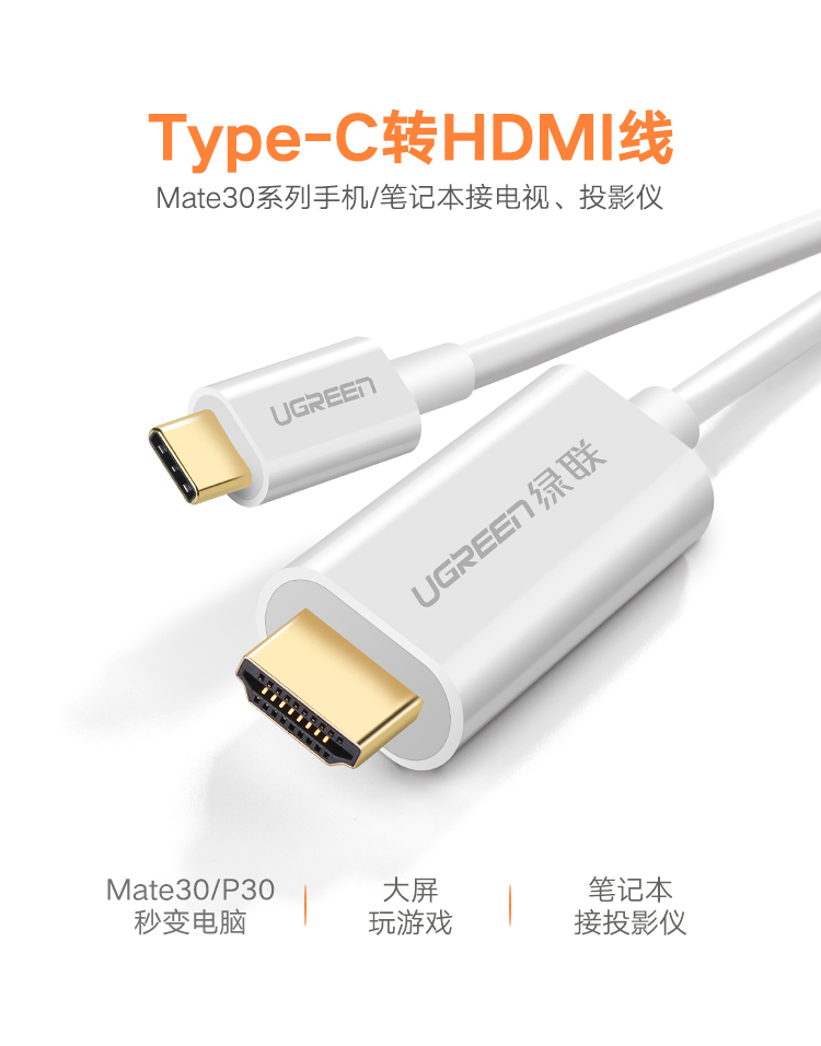 綠聯(lián) MM121 擴展塢 適用蘋果華為設(shè)備 USB-C轉(zhuǎn)HDMI 高清4K視頻傳輸 白色 單個裝