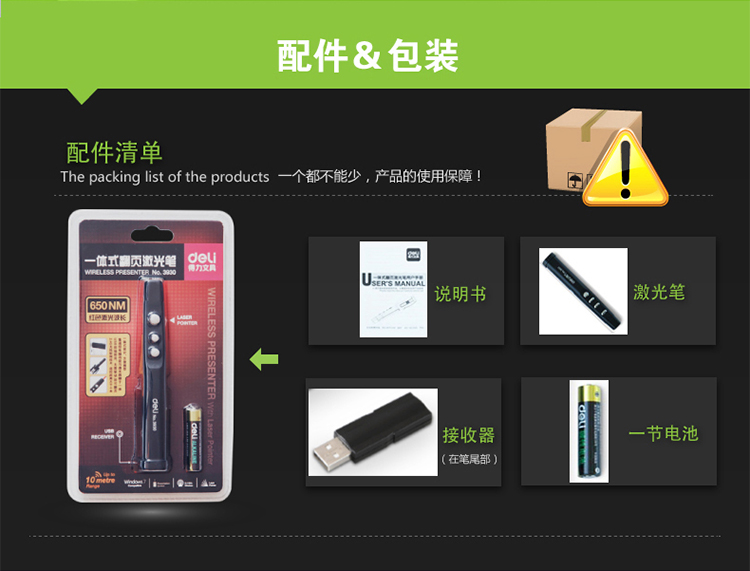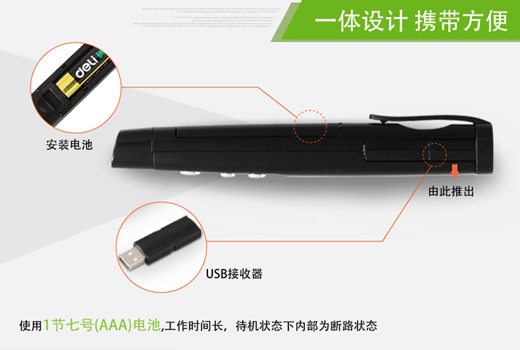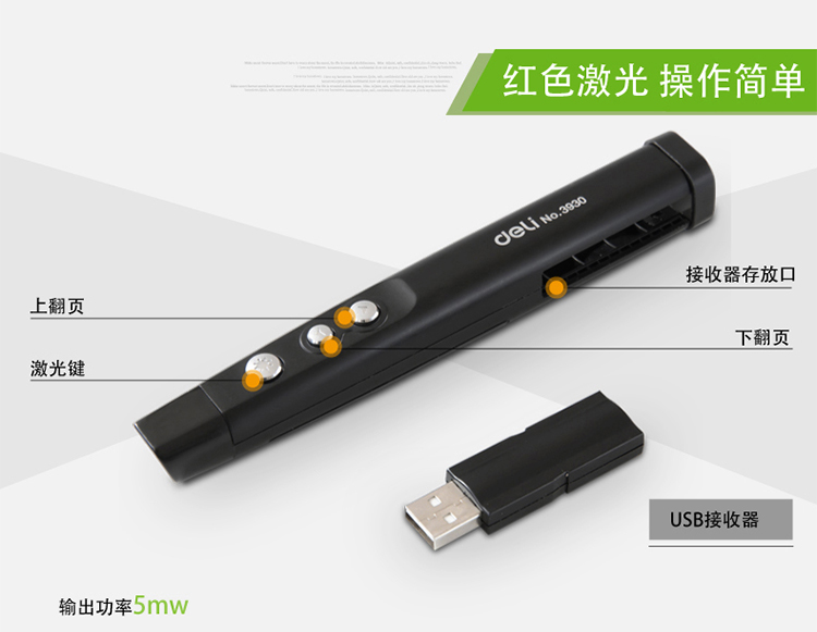 得力激光筆 3930 一體式翻頁激光筆 會議ppt播放 黑色 單位:支