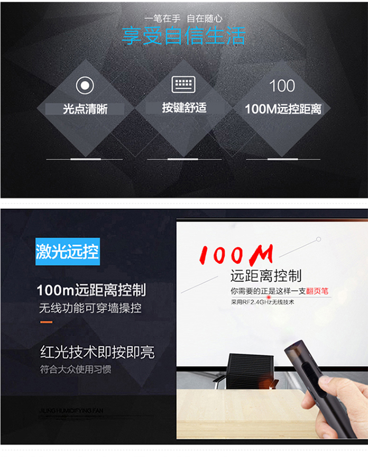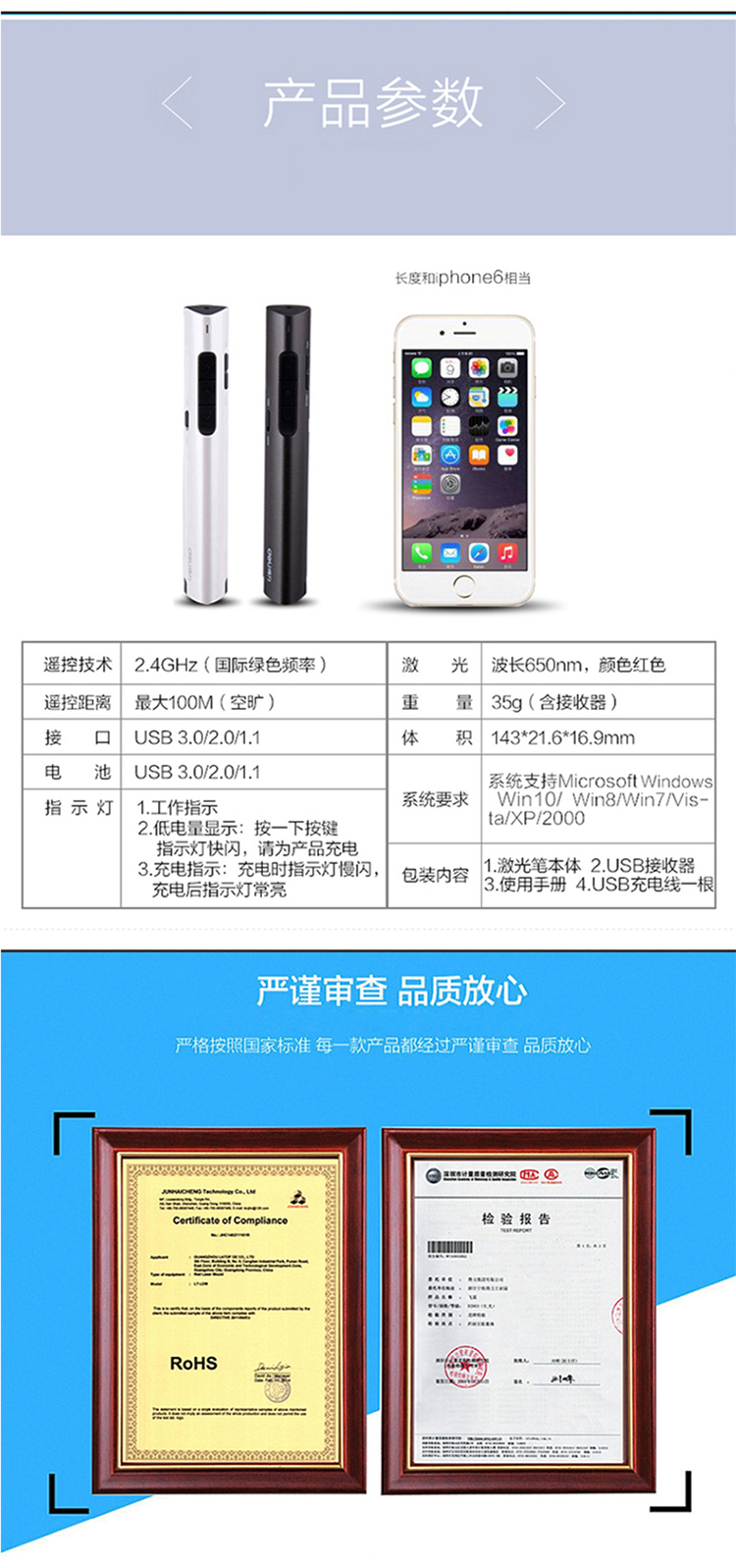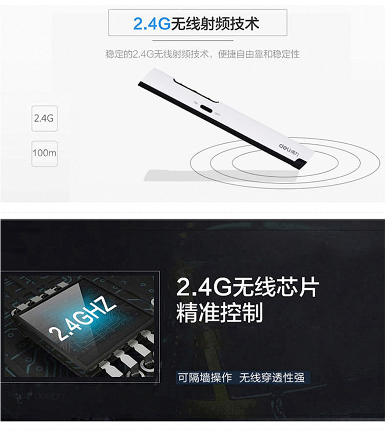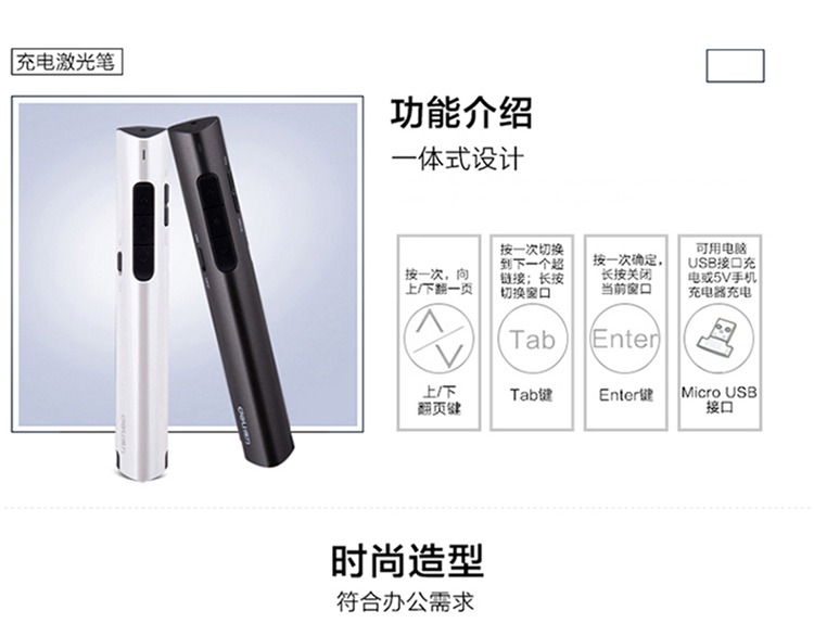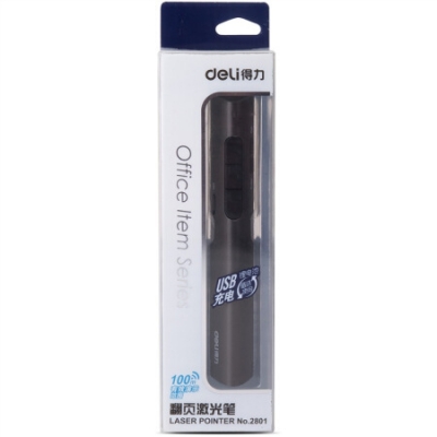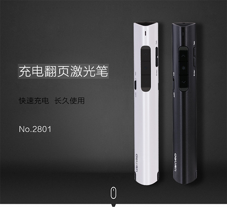 得力激光筆 2801 可充電便攜式翻頁筆無線演示器 綠光 黑桿 單位:支