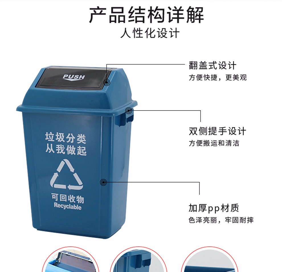 科靈 20L搖蓋 綠色 廚余垃圾分類垃圾桶帶蓋 飯店餐飲可回收廚余環(huán)衛(wèi)有害戶外四分類 單個(gè)裝