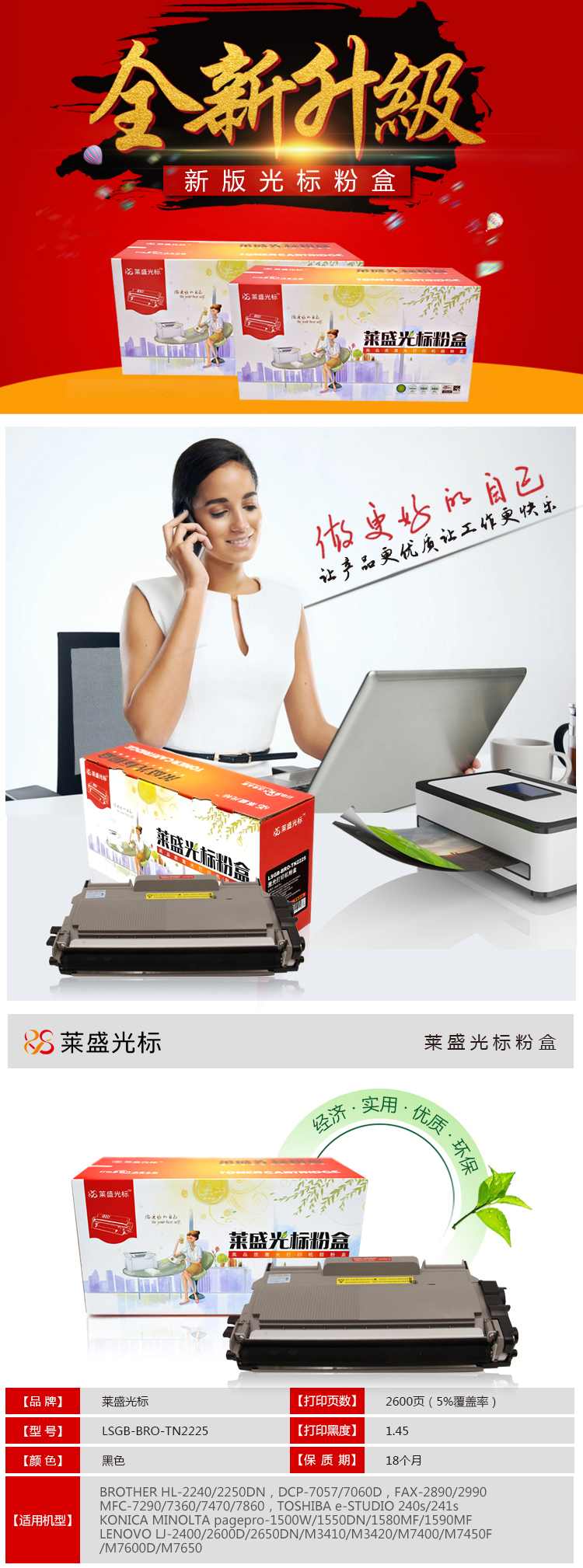 萊盛光標(biāo) LSGB-BRO-TN2225 黑色粉盒 適用:BROTHER HL-2240/2250DN DCP-7057 黑色 單位:支