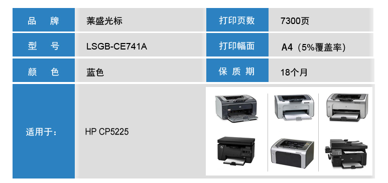 萊盛光標(biāo) LSGB-CE741A 青色粉盒 適用:HP CP5225 單位:支