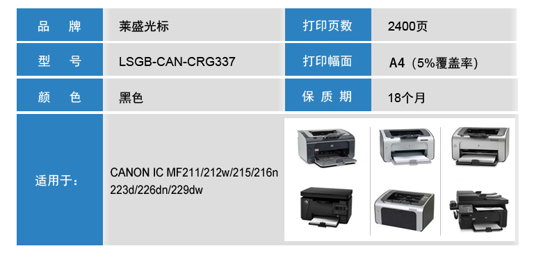 萊盛光標(biāo) LSGB-CAN-CRG337 黑色粉盒 適用于CANON IC MF211/212w/215/216n/223d 單位:支