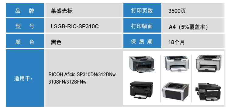 萊盛光標(biāo) LSGB-RIC-SP310C 黑色硒鼓 適用:RICOH Aficio SP310DN/312DNw/310SFN 單位:支