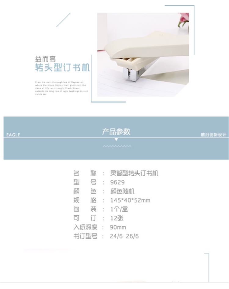 益而高訂書機(jī) 9629 旋轉(zhuǎn)訂書機(jī)大號(hào)訂書器 單位:個(gè)