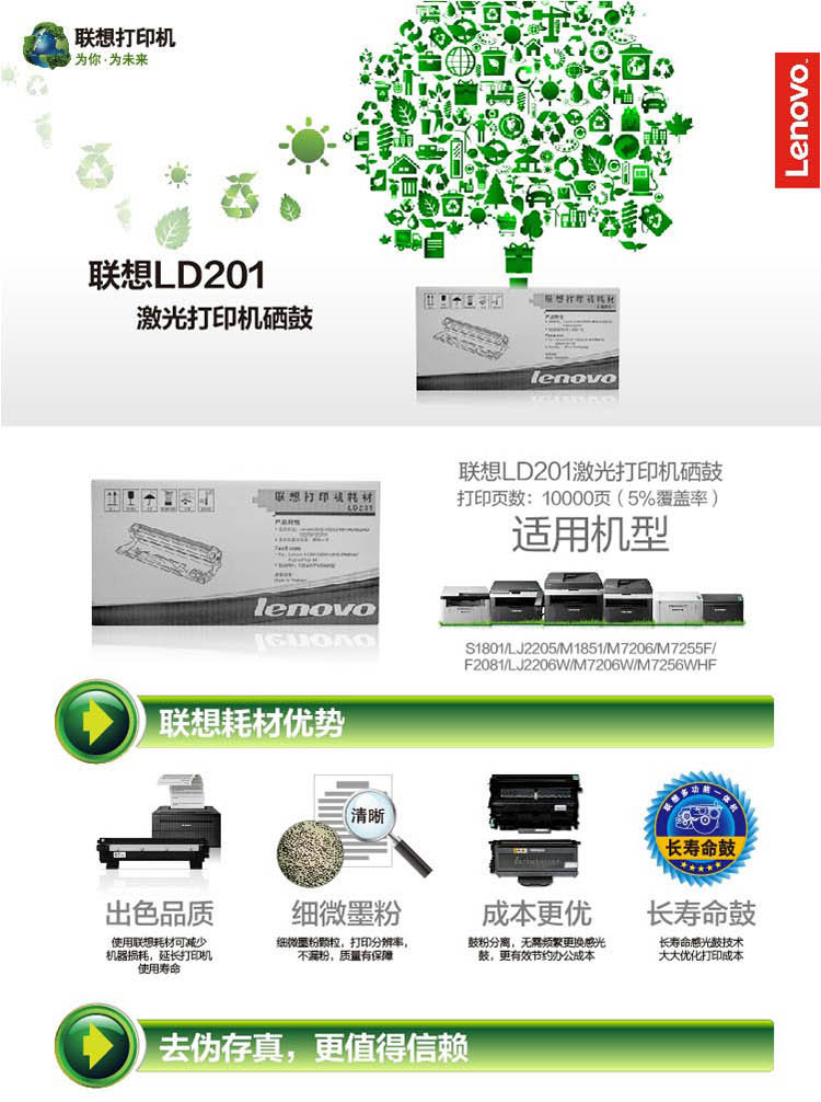 聯(lián)想(Lenovo)LT201 黑色墨粉 適用S1801/LJ2205/M1851/M7206/M7255F/F2081/LJ2206W/M7206W/M7256WHF打印機(jī)